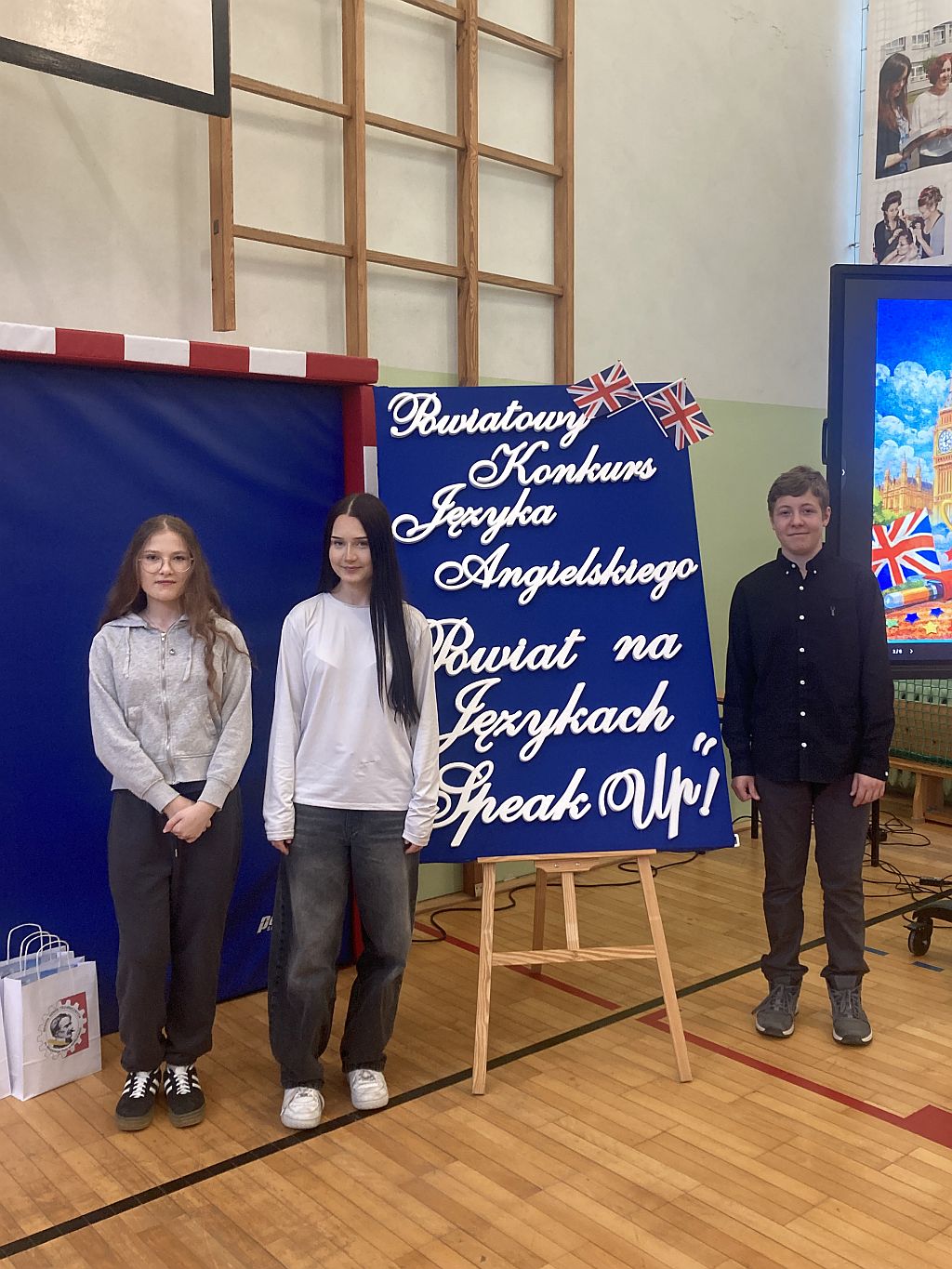 31 marca uczniowie naszej szkoły wzięli udział w podsumowaniu konkursu języka angielskiego, w którym wzięło udział około 90 uczniów z terenu powiatu. Konkurs składał się z dwóch części- pierwszej sprawdzającej  wiedzę leksykalną- gramatyczną oraz drugiej dotyczącej wiadomości o krajach anglojęzycznych. Serdecznie dziękujemy za reprezentowanie naszej szkoły Emilii Zaprzałce z klasy 8a, Julii Fydzie z klasy 7b oraz Andrzejowi Mrozek z klasy 7a.